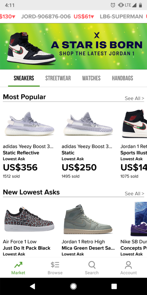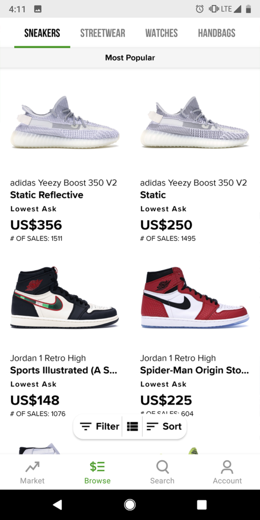 The deeper we delved into StockX, the lower my jaw dropped. Yeezy sneakers purchased at USD $180 were being resold on this app for more than double the original retail price, sitting as high as $500.